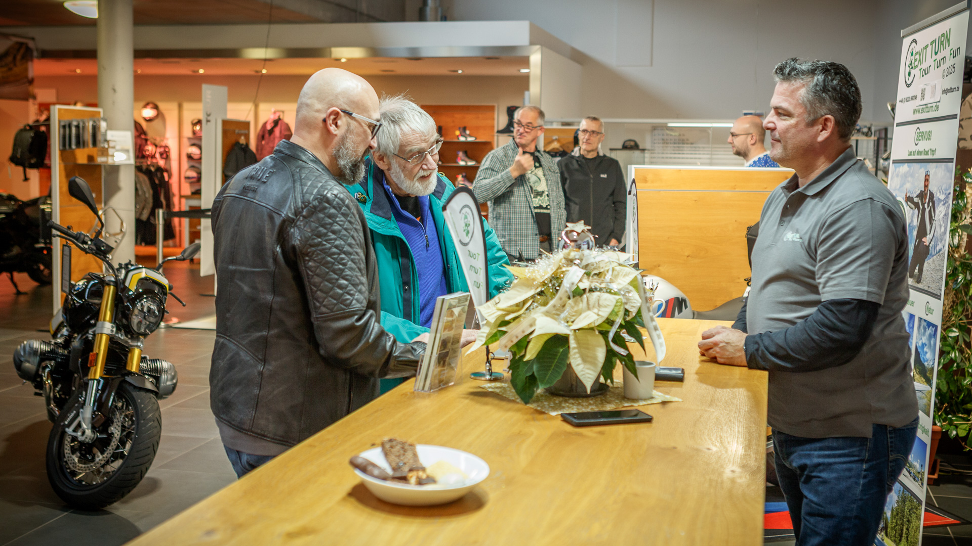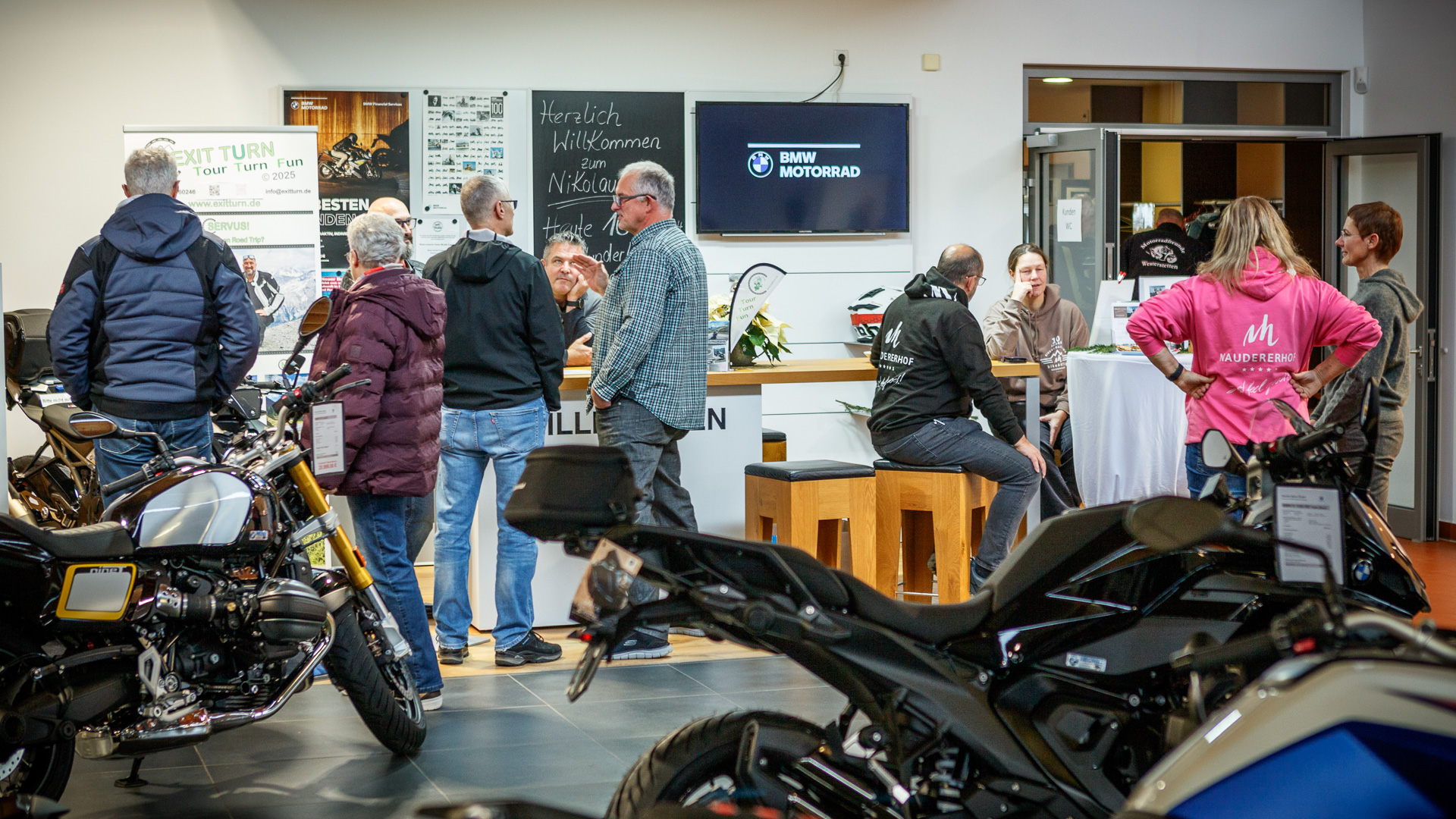 Bei Glühwein, Punsch, Kaffee, Würstchen und Plätzchen entstanden jede Menge lockere Gespräche, Fachsimpelei rund ums Motorradfahren und echte Benzingespräche. Man merkte schnell: Hier geht es nicht nur um Bikes, sondern um Community.